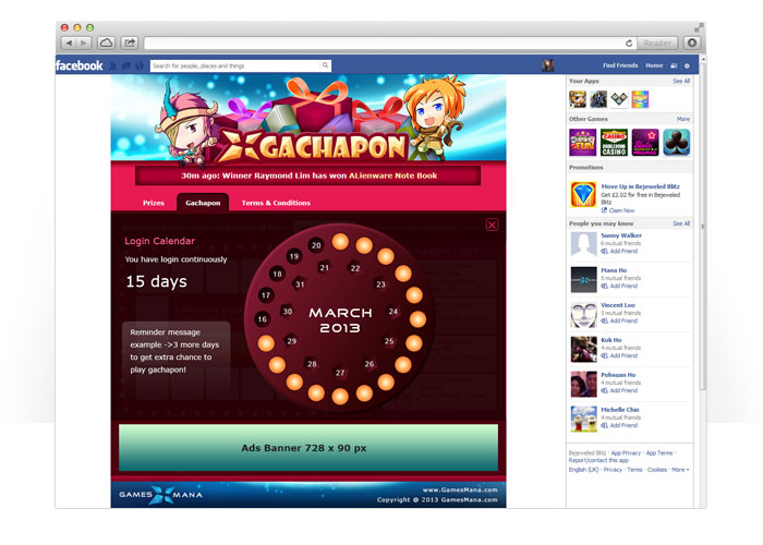 GamesMana Gachapon is a mini game microsite in Facebook to allows gamesmana user to play gachapon.