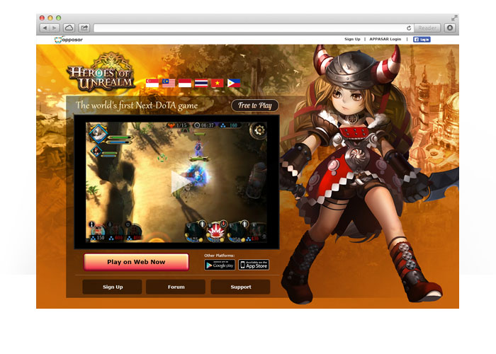 Heroes of Unrealm game micropage on appasar web portal.