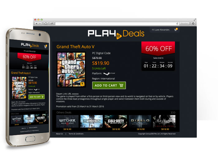 PLAYe Deals is an e-commerce website that collebrate with Razer Cortex to get user to purchase PLAYe digital game code. It is a mobile and desktop responsive website.